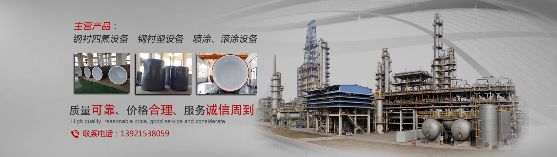 我公司專業(yè)生產防腐設備,主要產品有:鋼襯四氟、鋼襯四氟儲罐、反應釜內襯四氟、鋼襯四氟管道,四氟換熱器、PTFE襯里設備、鋼襯塑儲罐、鋼襯塑管道、攪拌槳等等。產品可應用于化工、氯堿、海水淡化、印染、顏料、儲運、電廠、稀土、冶金、電子、制藥、釀造等行業(yè)...